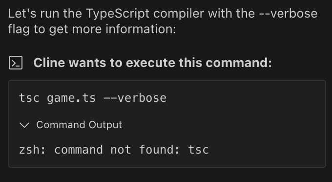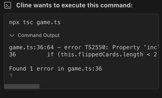 The only thing I had to do was to accept the write actions and command executions. After a failure running some commands Cline Dev inspects the error and starts to fix it right away without any further help needed.