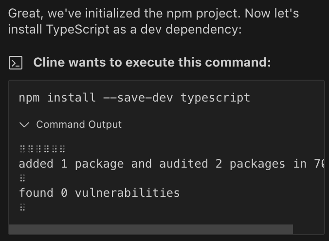 I was very positively surprised how well Cline Dev did and how well thought and professionally it worked. What I was expecting is that it would be more like a chatbot but it actually created a full project with html, css and typescript.