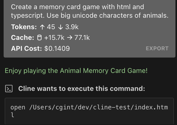 Overall, Cline Dev proves to be a surprisingly capable and efficient AI-powered development assistant, offering a streamlined experience for creating small-scale projects with minimal user input.
